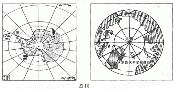 5、综合题 (10分)图18是南极地区和北极地区图。读图回答下列问题: