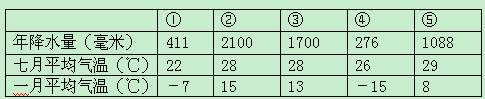 ⑵图二和图三分别是图一中A、B两地的气候资料,其中属于 A地的是________。