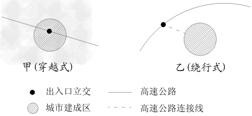 1、单选题 读高速公路与城市建成区空间关系示意图,完成1-2题。