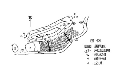 2、综合题 下图是一个市镇的平面略图。该市镇冬季常吹偏北风,夏季常吹东南风。