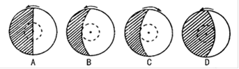 本题解析:A图晨昏线经过极点,即与经线重合,判断为春分或秋分日;B图晨昏线与极圈相切,北极圈内出现极昼,故判断为北半球夏至日;C图自转方向显示为南半球,图示南极圈内出现极昼,故判断为北半球冬至日; D图自转方向判断为北半球,北极圈内出现极夜现象,判断为北半球冬至日。