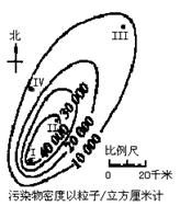 1.根据“空气污染的空间分布形态图”,该城市主要空气污染来源位于: