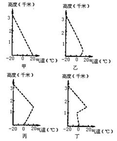 2.观察该市4月份气温垂直分布图,甲、乙、丙、丁四图中最有利于大气污染物扩散的是:
