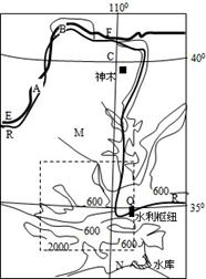 2、综合题 读下图回答下列问题。(1)水利枢纽Q对R河下游的有利影响有哪些?(2)说出M地形区的地貌特征及其形成的主要人为因素。(3)写出图中EF段铁路线的名称、分布特点及区位优势。