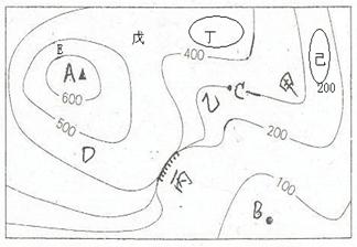 4、综合题 读图回答问题(20分) (1)判断地形甲、 乙____、丙____、丁 、戊 、己 (2)计算高度① 海拔A__、B__、C _ ② 相对高度AC___、BC ___、AB___③ 丙地顶部海拔__,底部海拔_ ,相对高度_ (3)F坡和D坡比较,坡度较大的是___,原因是___(4)甲乙两地中,可能有河流存在的是___,河流的流向____