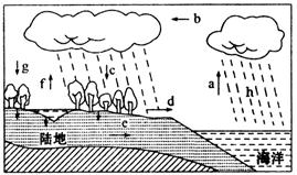 (1)图中的水循环环节是a海洋蒸发;b水汽输送;c降水;d地表径流;e地下径流;f陆上蒸发;g陆上降水;h海洋降水。