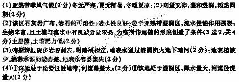 (2)分析喀斯特地貌的形成条件,并描述该地貌条件下形成的土壤特征。(6分)