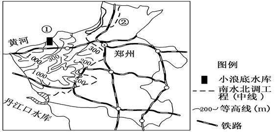 本题解析: (1)根据地形等高线分布可根据该省的地形特征概括为:地势西高东低;以平原和山地丘陵为主;西部为山地丘陵,东部为平原。 (2)①为小浪底水库,其作用可根据田纳西河知识迁移过来即可:防洪、除沙(防淤)、防凌汛、旅游、发电、灌溉、供水等。②为南水北调中线工程,其主要作用为缓解华北地区水资源短缺现状。 (3)影响食品加工业可以从:原料充足(小麦区)、交通便利(铁路众多)、劳动力丰富且廉价、市场广阔等方面入手。 (4)从表中数据分析可知,该村农业发展中主要存在以下问题:人均耕地面积少、生产规模小、商品率低、机械化水平低等。根据以上问题制定以下措施:调整产业结构、扩大生产规模、提高机械化水平、加大科技投入,提高单位面积产量,进而提高商品率。