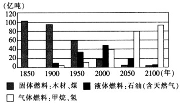 1、全球能源消费历史及趋势图中体现的1900~2100年全球能源消费构成的变化特点是