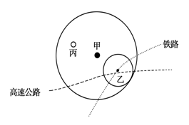 5、单选题 图为“甲、乙、丙三个服务中心的服务范围示意图”,读图完成1-2题。