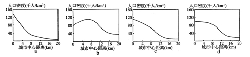 4、单选题 该面是某城市不同时期人口密度与距市中心距离关系图,读图回答10~12题。