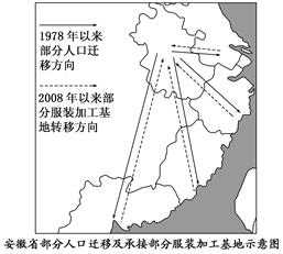 (1)分析图示服装加工基地转移和人口迁移的原因。(8分)? (2)据此说明产业转移对安徽省未来人口迁移和城市化的影响。(6分)