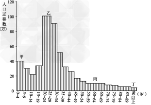 2.图中甲~丁不同年龄段的人口迁移,有明显相关性的是