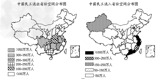 3、单选题 据国家抽样调查,我国每3个产业工人中就有2个来自农村,2003年我国外出务工的农民达1.14亿。读下图,完成1~2题。