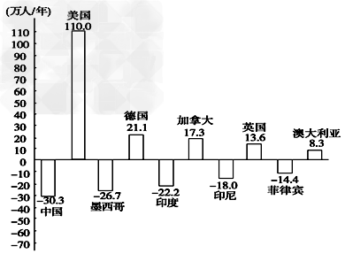 1、单选题 下图反映了2001年~2050年世界移民趋势。据此完成1~2题。
