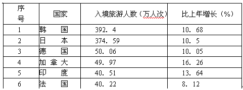 (1)简述韩国继续位列第一大入境客源国的原因。(3分)