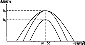 2、单选题 下图是北半球某地二分.二至日大阳高度日变化图。读图回答问题。1.该地的经度是 2.某日该地日出时北京时间为11:00,则该日该地日落时北京时间为 3.若黄赤交角为K,则图中hl与h2的差为 4.一年中该地正午物体影子朝北的时间约为