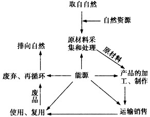 2、综合题 绿色产品是指生产过程及其本身节能、节水、低污染、低毒、可再生、可回收的一类产品。读产品在社会中的一般流程图,回答下列问题。