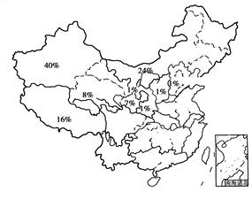 2、单选题 中国现有荒漠化土地267?4万平方千米,其中风蚀荒漠化187.3万平方千米,土壤盐渍化17.3万平方千米,冻融荒漠化36.3万平方千米。荒漠化土地主要分布在下图所示的9个省区,占荒漠化土地总面积的99%,据此回答以下题。