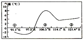 5、单选题 读下图“沿30度纬线某月平均气温曲线图”,完成下列各题。
