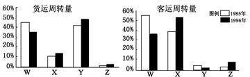 | 小题2: 导致X运输方式的货运和客运周转量,1996年比1985年明显增长的原因是(?) A.高速公路里程大幅增长 B.铁路全面提速 C.民航机场数目增加 D.水运条件明显改善