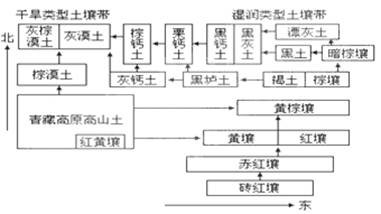 5、单选题 遥感资料显示,我国西北地区土地反射太阳辐射的能力要强于东部。下图为“我国土壤水平地带分布模式”。读图回答下列各题。