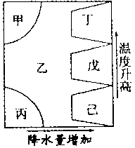 ①甲为荒漠?②丙为热带雨林?③丁为针叶林?④戊为阔叶林