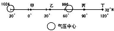 小题2:图中丁地可能出现的天气系统是?(?)