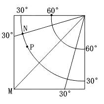 4、单选题 图是经纬网图,已知M地位于赤道,N地比P地先见到日落,此刻,图中70度以内为极昼,再过8小时,N地太阳高度达当日最大。读图回答下列小题。