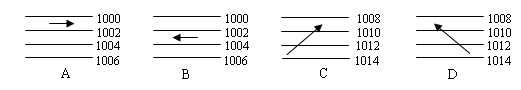 4、单选题 下列四图中,表示北半球近地面风向的是(以下单位为百帕)( )