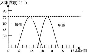 5、综合题 读杭州(30°N,120°E)和甲地某日太阳高度变化图,完成(14分)