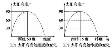 3、单选题 读“下列太阳高度随经度和纬度变化示意图”,回答下列小题。