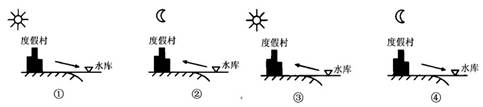 3、单选题 该图中能正确反映水库与度假村之间风向的是