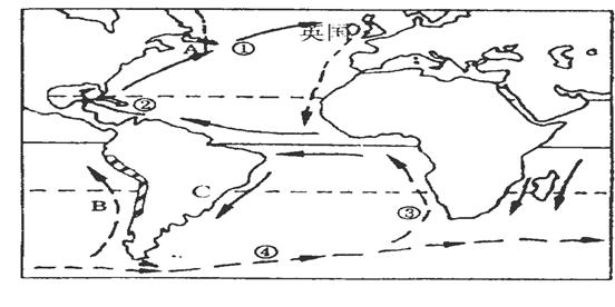 (3)英国有一个富翁,临终时将自己的财产托付与律师,把一个漂流瓶扔进大海,里面写了遗嘱“谁捡到此瓶,财产将赠与谁”。300年后,一个小男孩在C处海滨捡到了漂流瓶,得到了这笔财产。请问,漂流瓶从英国近海漂流至C处近海依次经过的洋流是: 。(8分)