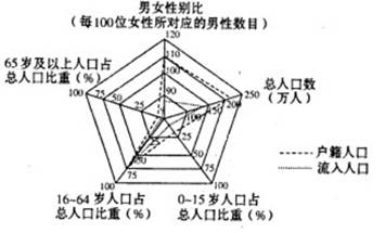 小题1:图示信息的转换,与户籍人口相比,该市流入人口劳动力人口比重差异不大,老龄人口和青少年人口比重较小,这与流入人口主要从事务工经商相符。女性人口比重较大,可能与该市产业结构轻型化有关。