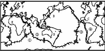 1、综合题 读“六大板块示意图”,回答:(7分)