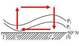 2、综合题 读沿50°N一带的四地近地面等压面分布图,回答下列问题。(10分)