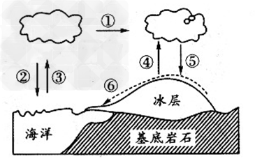 2、单选题 下图为南极地区水循环示意图,回答1—2题。?