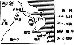 参考答案:(1)都城的区位优势:位于太湖平原地区,气候温暖湿润,农业发达;位于京杭运河南端,水运方便,
