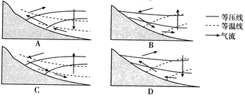参考答案:B 本题解析: 本题难度:一般 2、单选题 山谷风是由于山地热力原因形成的。白天因山坡上的空气比同高度自由大气增温强烈,于是暖空气沿坡上升,成为谷风;夜间由于山坡上辐射冷却,使邻近地面的空气迅速冷却,密度变大,因而流入谷底,成为山风。 参考答案:B 本题解析:该题考查热力环流知识,但是题目直接给出了山谷风形成过程,使该题比较简单,只需根据等温线判断出白天、夜晚坡面和谷地的气压即可。A、D两图形都表示谷风,不合题意,应舍去;答案在B、C中的一个,C图形同一水平面上坡面比谷地气温高、气压低,气流在坡面应该上升,在谷地应该下沉,吹谷风;B选项气温气压分布和气流运动方向符合,答案应选B。 本题难度:一般 3、单选题 读全球能量盈余区与亏损区随纬度分布示意图。 |