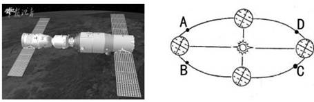 小题2:对接时间为6月18日,位于夏至日之前,根据公转轨道图示的太阳直射点的位置判断,AB之间太阳直射点位于北回归线上,判断为夏至日,故A位置最接近6月18日。