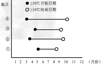 (4)图中森林类型为_______________;实地考察发现图③中山脉西坡雪线比东坡低,原因是______________________________。(3分)