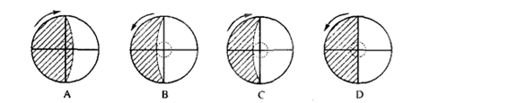 1、单选题 下面四幅图中,正确表示12月22日前后的是(阴影部分表示黑夜):