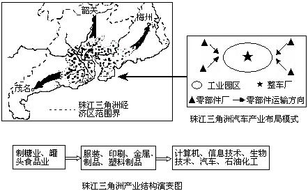小题4:简述珠江三角洲地区汽车产业生产布局的特点,并解释其形成原因。