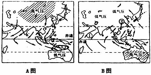 (3)据图分析,③处季风的成因主要是 & 91EXAM.org#160; ,①处季风的形成原因是 。
