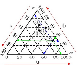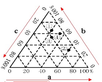 本题解析:本题通过三角坐标考查人口问题。 小题1:三角坐标的读法是:①先沿着三个坐标轴数值增大的方向画三个箭头