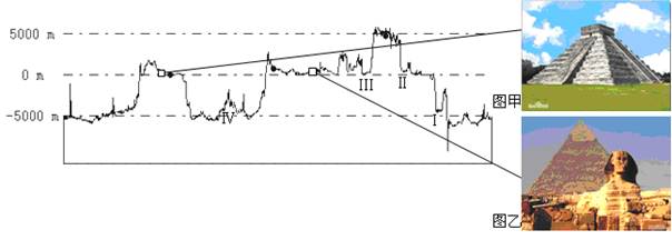 3、单选题 神奇的北纬30°,有着包括埃及金字塔、雅鲁藏布大峡谷、喜马拉雅山、玛雅文明、百慕大三角等让数以万计的专家学者都百思不得其解的秘密。图为北纬30°地形剖面图,读图回答下题。