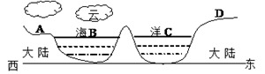 5、单选题 图中,纬度相同的A、B、C、D四地中昼夜温差最小的是