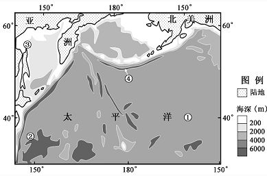 5、综合题 下图是北太平洋局部海域海底地形简图。读图回答下列问题。(10分)