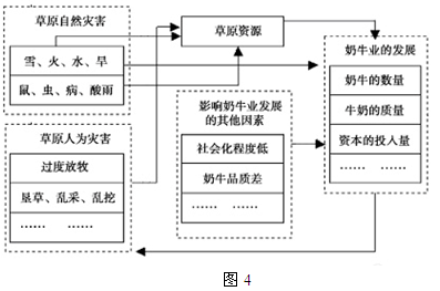5、单选题  读“自然灾害与中国奶牛业发展示意图”(图4),回答问题。 1.关于草场自然灾害的叙述,正确的是2.关于我国奶牛业发展的叙述,正确的是